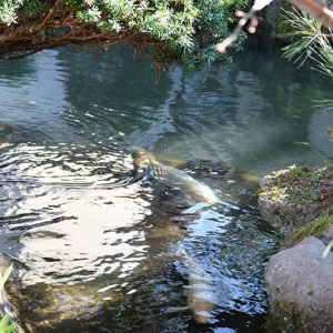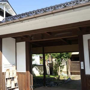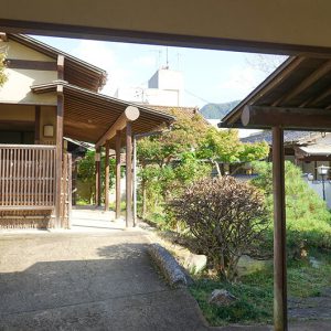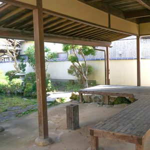 大原宿の町並み保存地区内にあるフリースペースです。門を入ると、鯉が泳ぐ池をみながらゆっくり休めるベンチがあります。